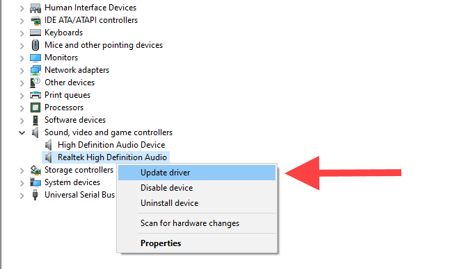 If you can’t roll back your audio drivers (or if that didn’t fix the YouTube audio renderer error), do the opposite and update them instead.