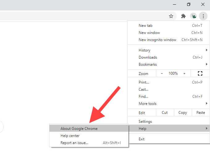 In Google Chrome, open the Chrome menu, point to Help, and then select About Google Chrome.