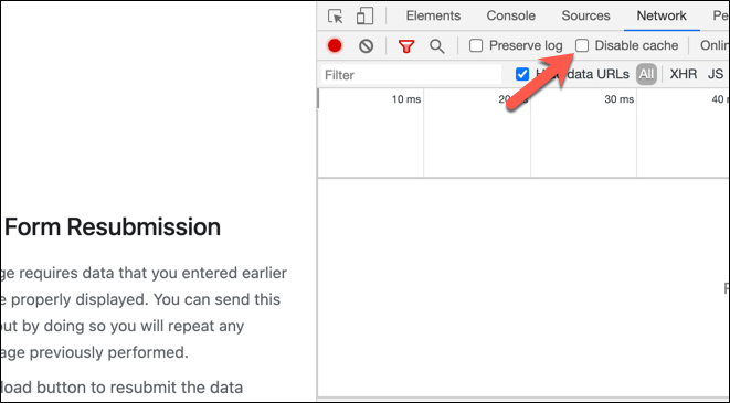 If all else fails, you can bypass an Err_Cache_Miss error by temporarily disabling the Google Chrome caching engine in the **Developer Tools **menu.