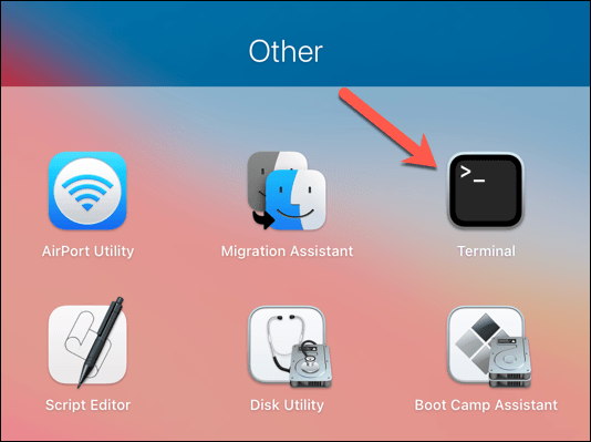 - For Mac users, open a new **Terminal** window by selecting the **Launchpad **from the Dock, then selecting **Other > Terminal**.