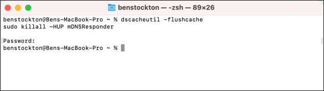 - In the new **Terminal** window, type the following commands to reset your DNS cache: