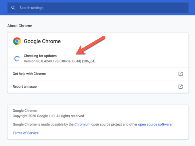 - Google Chrome will automatically begin to search for and install any available updates. If it doesn’t, select the **Update Google Chrome **button.