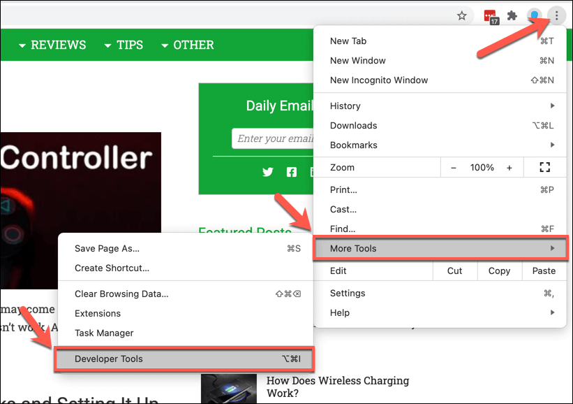 - To do this, open the Chrome tab containing the broken page, then select the **hamburger menu **icon in the top-right, then select **More Tools > Developer Tools **from the menu.