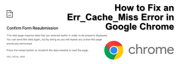 The Err_Cache_Miss** **error occurs when data, being sent from your browser to an online server, is interrupted. The data is usually required for the page to load correctly, but doing so will require the data to be transferred again, which isn’t always appropriate.