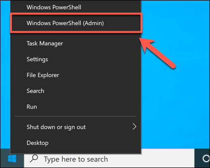 - To do this on Windows, right-click the Start menu and select the **Windows PowerShell (Admin) **option.