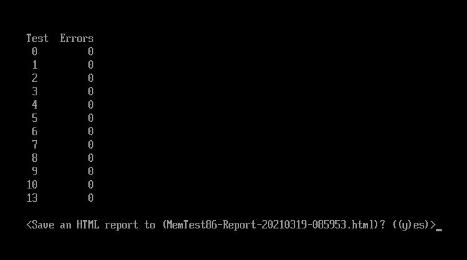 - MemTest86 can generate an HTML report containing its findings in a more user-friendly format. Hit y to confirm.
