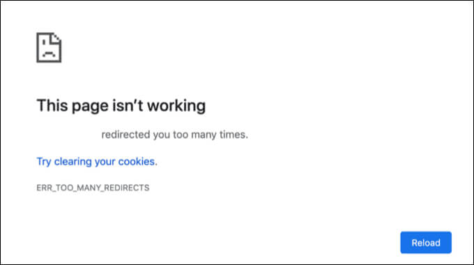 As we’ve mentioned already, the err_too_many_redirects error occurs when Google Chrome can’t load a page due to a redirection loop. This is when a page you attempt to visit is redirected elsewhere, then redirected again, and again, with the process repeating up to 20 times before Google Chrome hits the brakes.