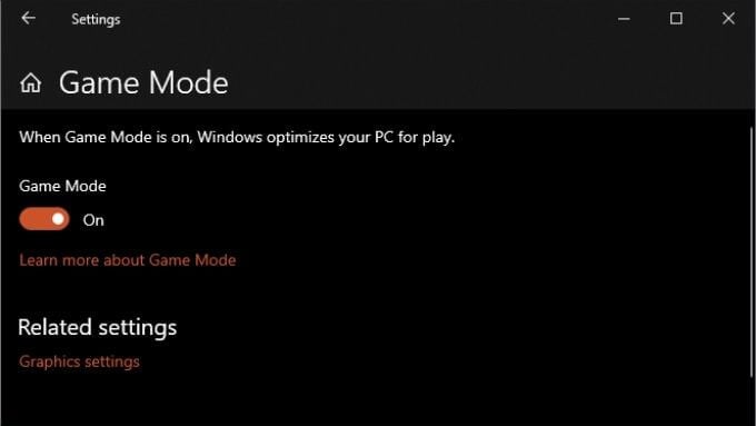 In the latest version of Windows 10, Game Mode seems to be switched on by default. However, if you’re experiencing stutters in your games, you’ll want to check if it’s on. All you have to do is search for “Game Mode” in Settings or directly from the Start Menu. Then, simply toggle the switch to the “On” position.