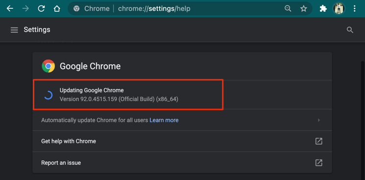 Updating Chrome is equally easy. Paste chrome://settings/help in the address bar, press Enter, select Update Google Chrome, and reopen Hulu in a new tab when the update is complete.