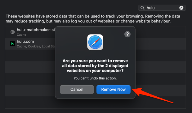 - Type **hulu** in the search bar and select **Remove All Shown**.