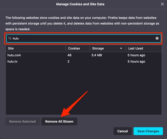 If you’re streaming Hulu on a PC or Mac computer, clearing your Hulu’s data in your browser might resolve problems causing the Hulu error code P-DEV320. Deleting Hulu’s site data and cookies will sign you out of Hulu. Make sure you have your account credentials handy before you proceed.