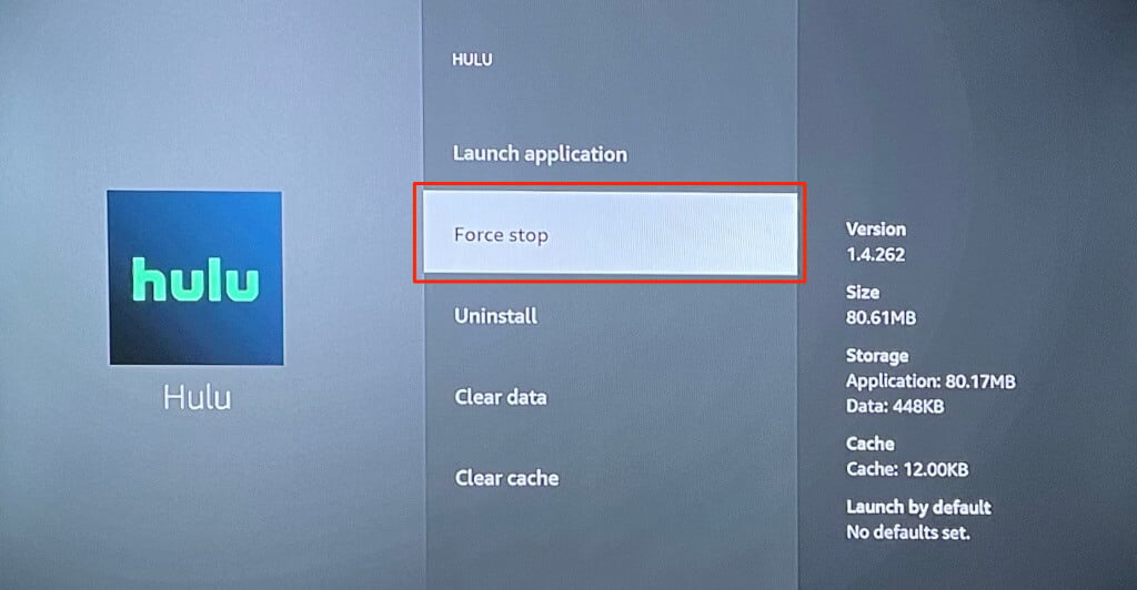 If you’re getting the Hulu error code P-DEV320 on a Fire TV device, go to Settings > Applications > Manage Installed Applications > Hulu and select Force Stop to force-quit Hulu.