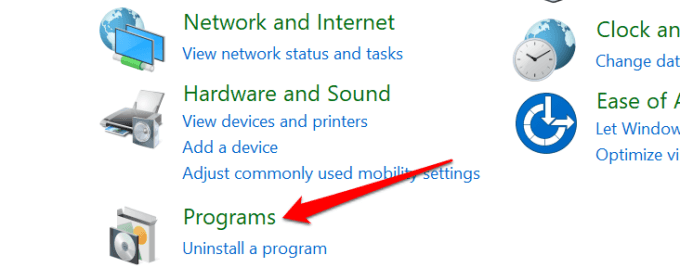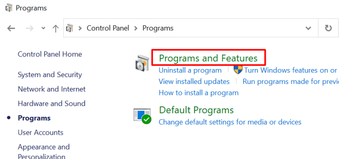 - Click the **Programs and Features** header.