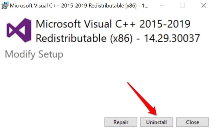 Uninstall Microsoft Visual C++ Redistributable