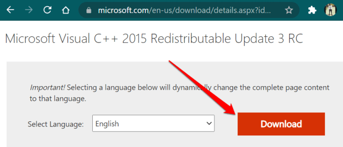 To reinstall the libraries, head to the Visual C++ 2015 Redistributable download page on Microsoft’s website and follow these steps.