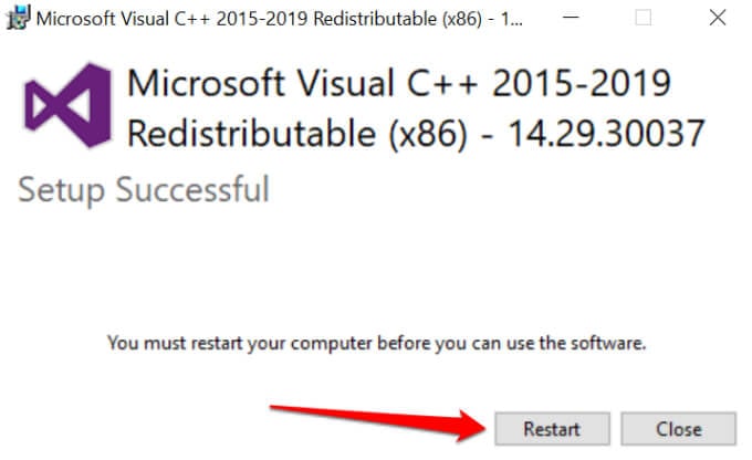 Install Microsoft Visual C++ Redistributable
