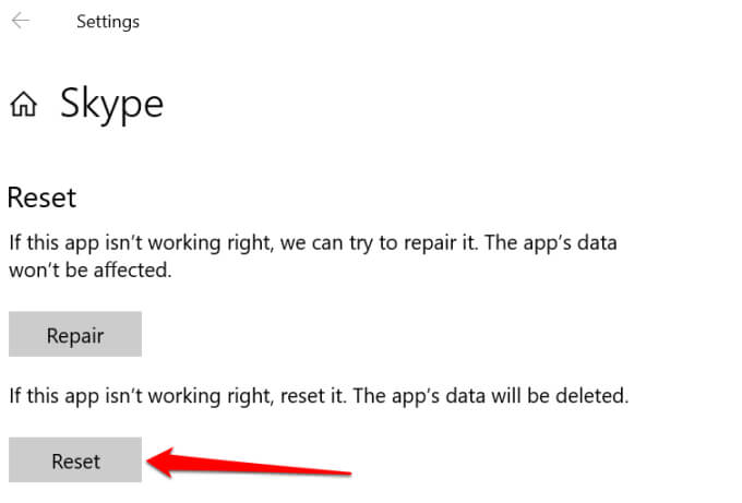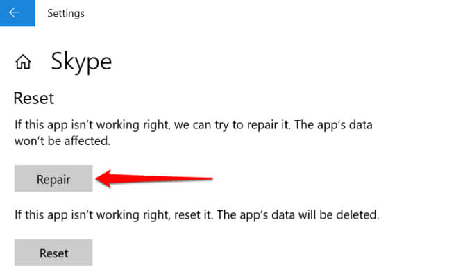 - Scroll down the page to the “Reset” section and select the **Repair** button.