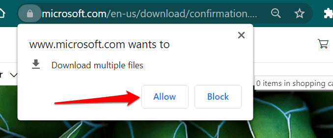 - Your browser may display a notification notifying you that microsoft.com wants to download multiple files simultaneously. Select **Allow** and save the executable files on your PC.