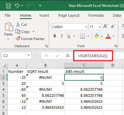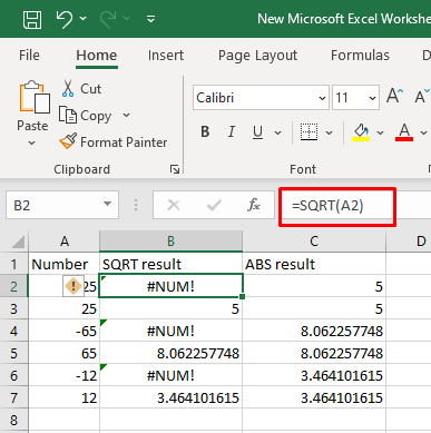The most typical example of an impossible calculation is attempting to find the square root of a negative numeric value. Let’s see it in the example with the SQRT function: