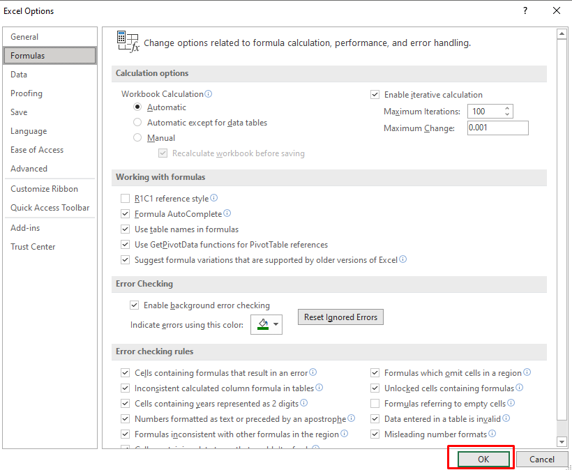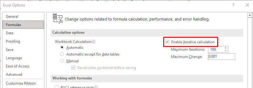 You may need to adjust the iteration settings in Excel in order to help your formula to converge. Here’s how to do it: