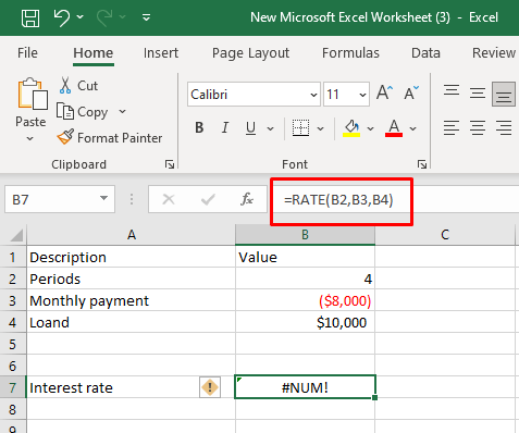 Another reason for getting the #NUM error is if Excel deems the calculation impossible. In that case, you’ll have to identify the function or the part of the function that’s causing the problem and adjust your formula or inputs accordingly.