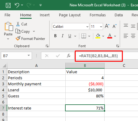 Note that modern versions of Microsoft Excel will change your negative input into brackets (our -$10,000 was changed into ($10,000)), so don’t worry if you see this happening. The formula will still work.