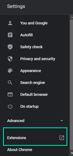 - In Settings, click **Extensions** from the left menu.