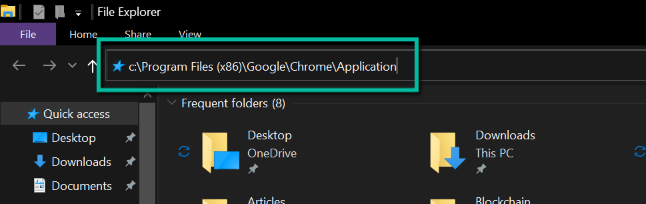 - In the location bar found on the File Explorer, paste: “c:\Program Files (x86)\Google\Chrome\Application