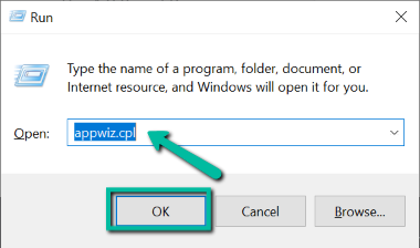 - On Run, type appwiz.cpl and click OK.