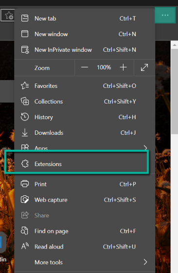 - Click the three horizontal dots found on the top-right part. Select Extensions.