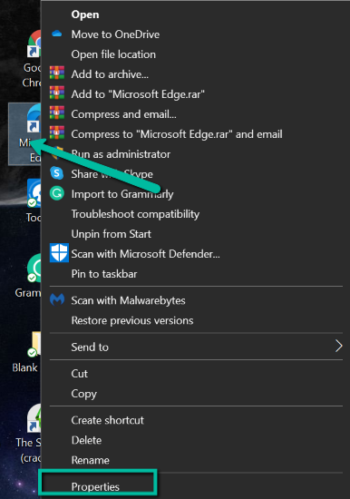 - Right-click on the icon and select Properties.
