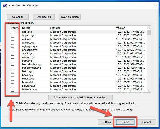 Run the Windows Driver Verifier Tool