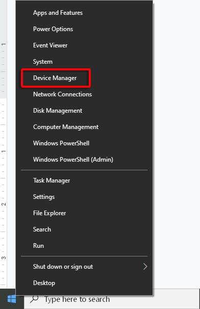 - Right-click the Start menu and select Device Manager.