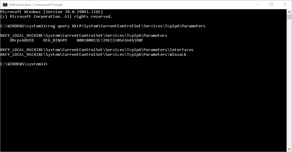 reg query HKLM\System\CurrentControlSet\Services\TcpIp6\Parameters