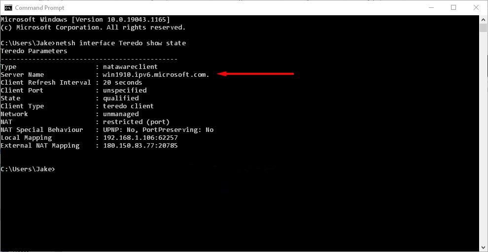 Check Teredo Server Name
