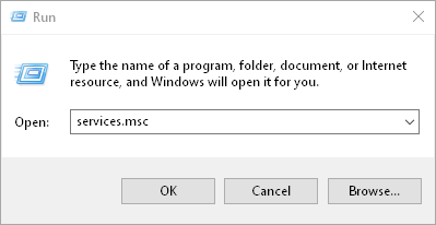 - Type services.msc and press Enter.
