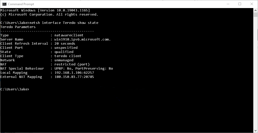 - If Teredo is disabled, it will return a line including the following: