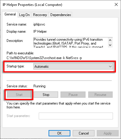 If your IP Helper won’t start due to issues with dependent services, try the following: