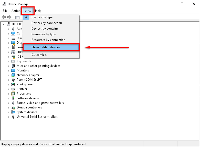 - Select **View** > **Show hidden devices**.