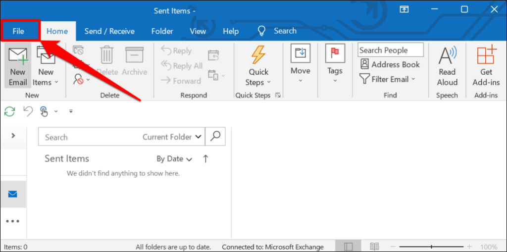 - Open Outlook’s File menu.