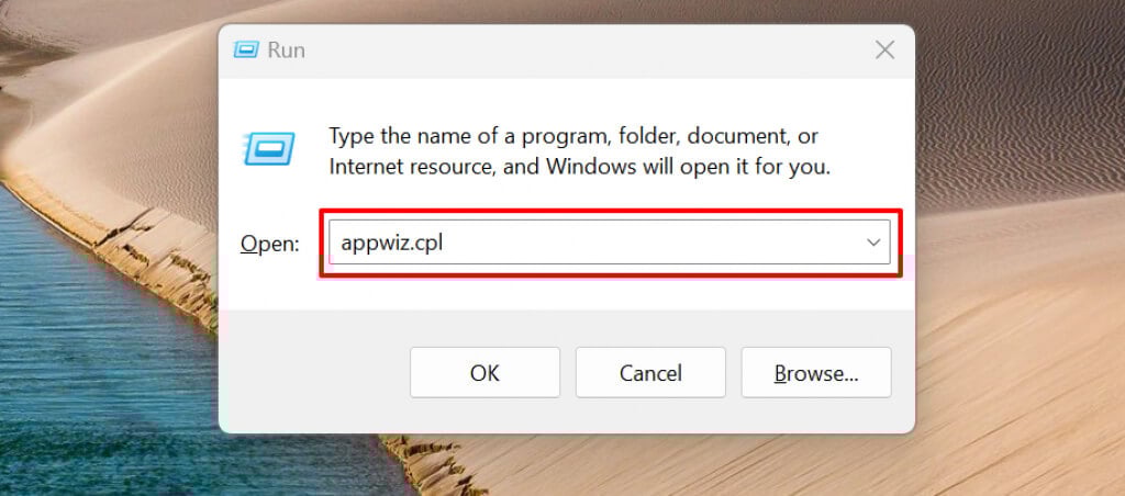 - Press Windows key + R, paste appwiz.cpl in the dialog box, and press Enter.