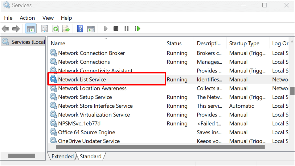 - Locate and double-click Network List Service.