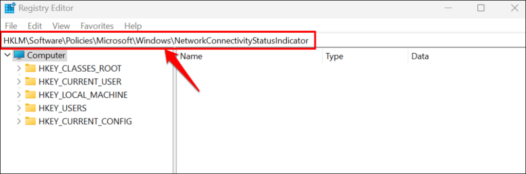 HKLM\Software\Policies\Microsoft\Windows\NetworkConnectivityStatusIndicator