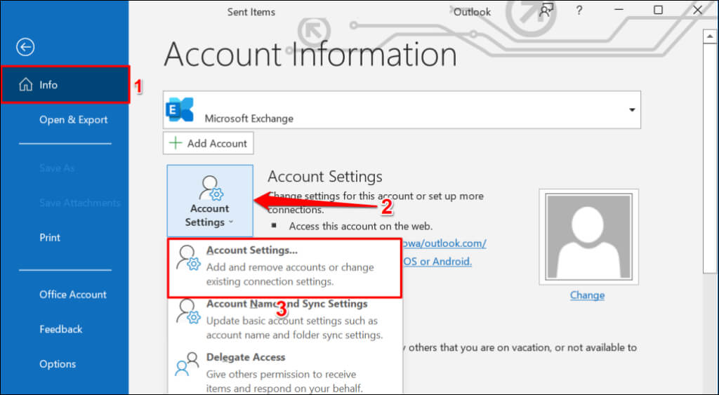 - Head to the Info section on the sidebar, select Account Settings, and choose Account Settings.