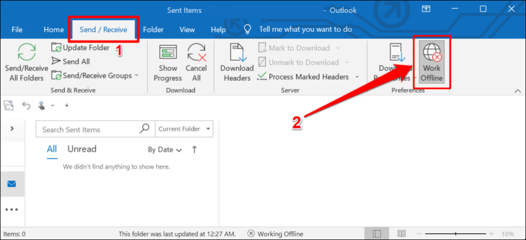 Turn Off “Work Offline” Mode