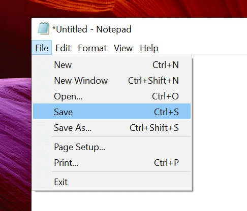 - Click on the File menu at the top and select the Save option. You’ll be saving it as an executable batch file on your PC.