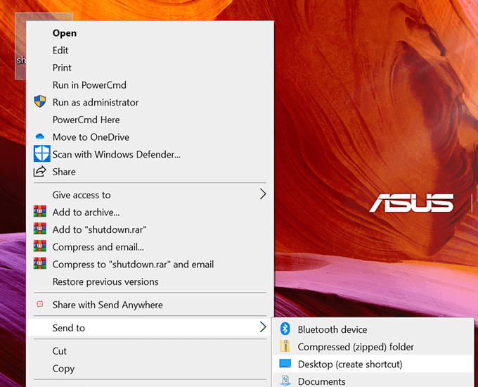 - Right-click on the file and select Send to followed by Desktop. It’ll create a shortcut on your Desktop.