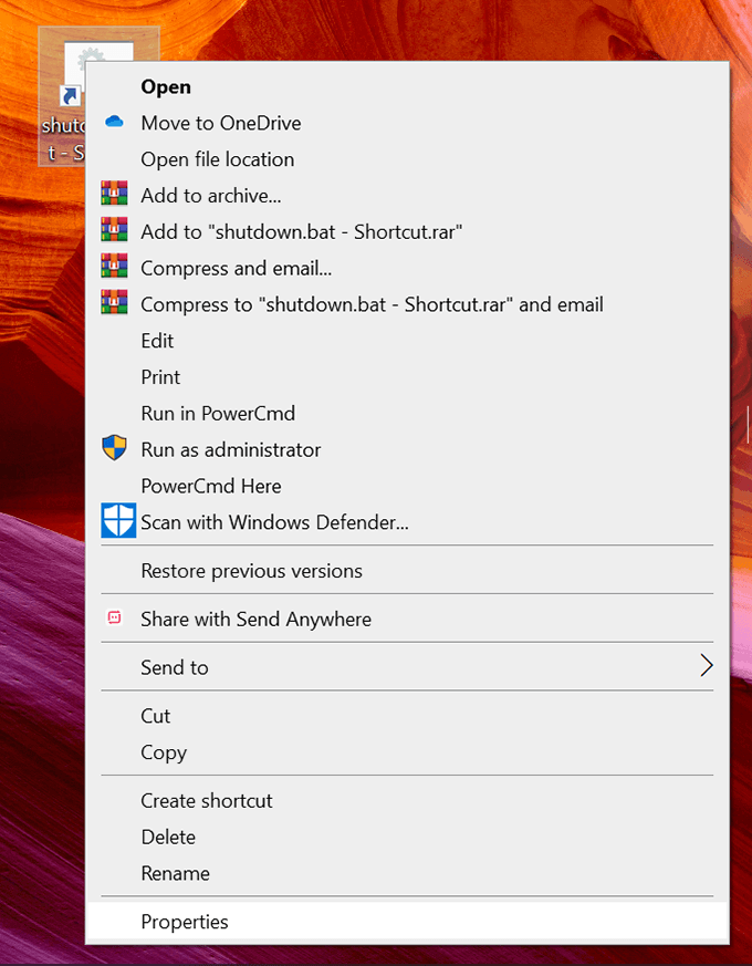 - Right-click on the newly created shortcut and select Properties.
