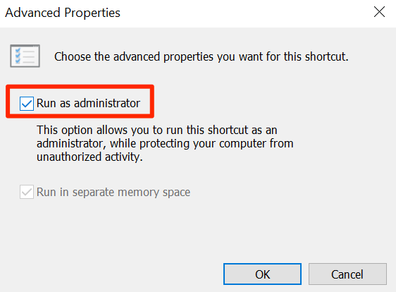 - Checkmark Run as administrator and click on OK.