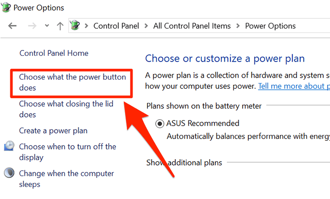 - Select Choose what the power button does in the left sidebar.